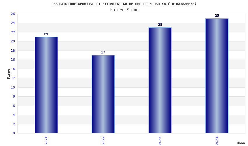 | Anno | Firme | Importi | Media | Naz. | Reg. | Prov. | Comu. |