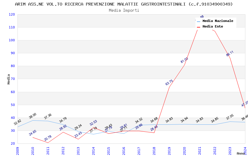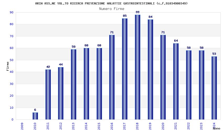 | Anno | Firme | Importi | Media | Naz. | Reg. | Prov. | Comu. |