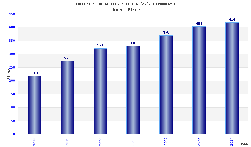 | Anno | Firme | Importi | Media | Naz. | Reg. | Prov. | Comu. |