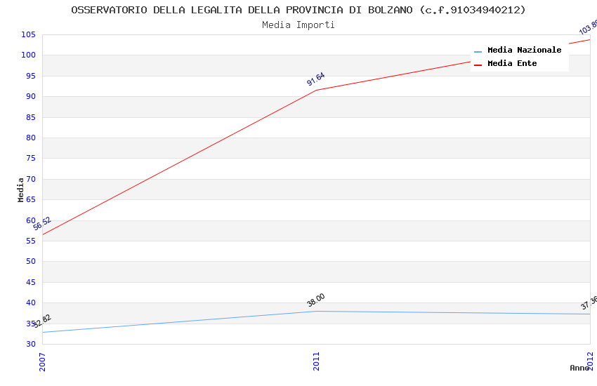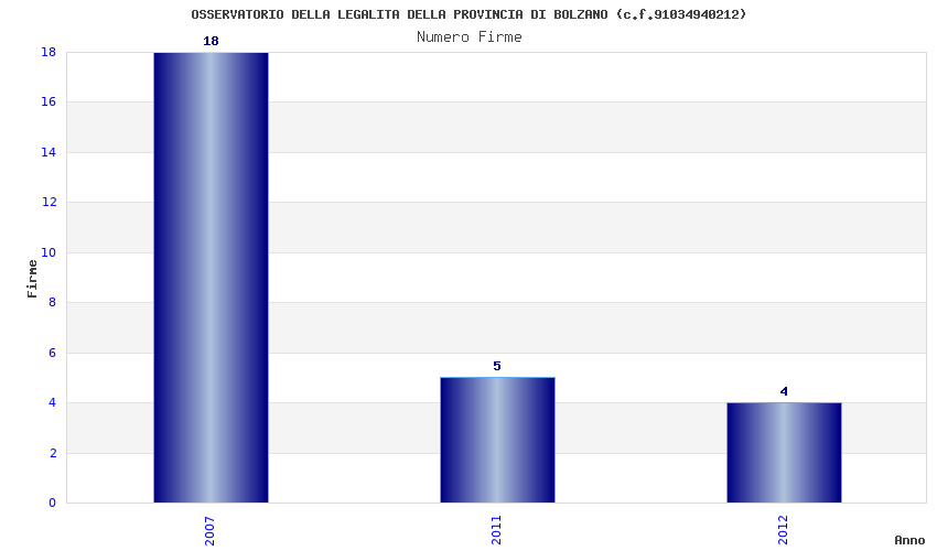 | Anno | Firme | Importi | Media | Naz. | Reg. | Prov. | Comu. |