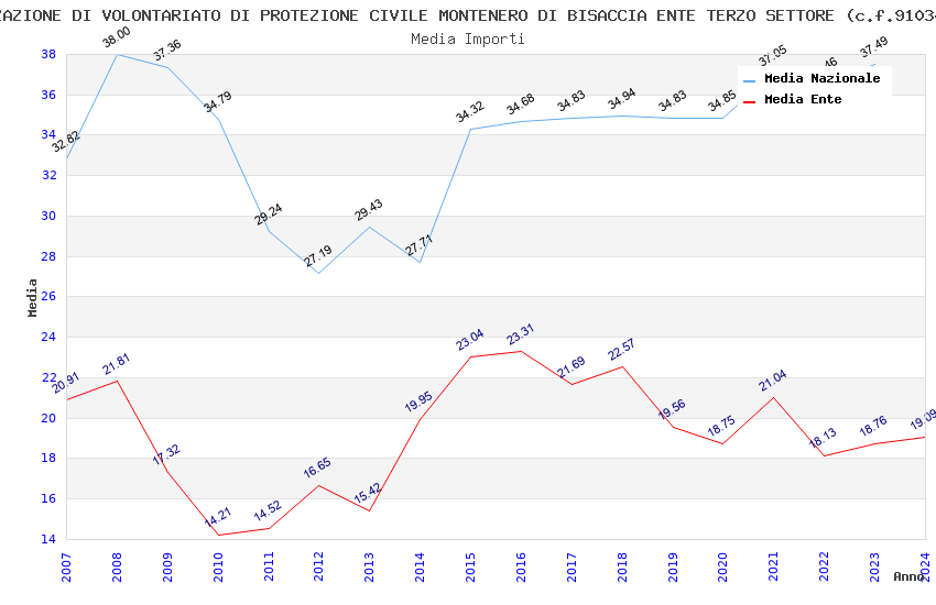 | Anno | Firme | Importi | Media | Naz. | Reg. | Prov. | Comu. |
