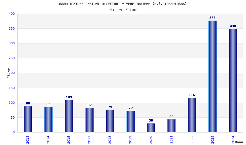 | Anno | Firme | Importi | Media | Naz. | Reg. | Prov. | Comu. |