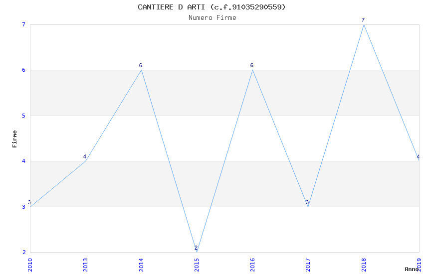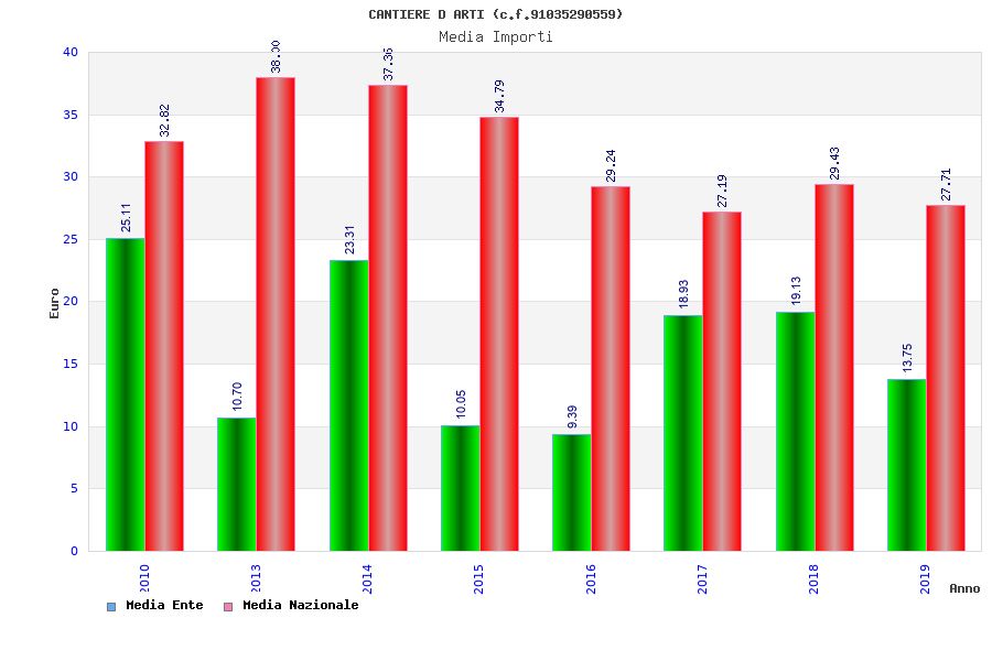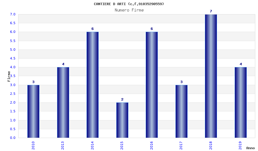 | Anno | Firme | Importi | Media | Naz. | Reg. | Prov. | Comu. |