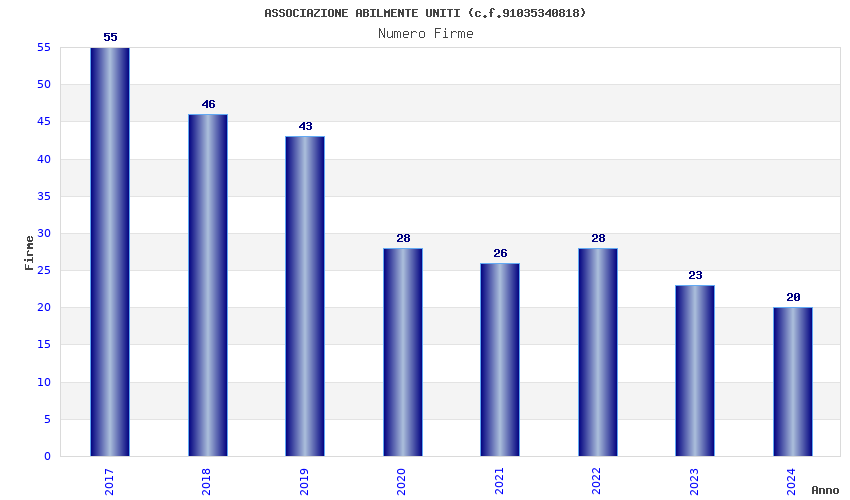 | Anno | Firme | Importi | Media | Naz. | Reg. | Prov. | Comu. |