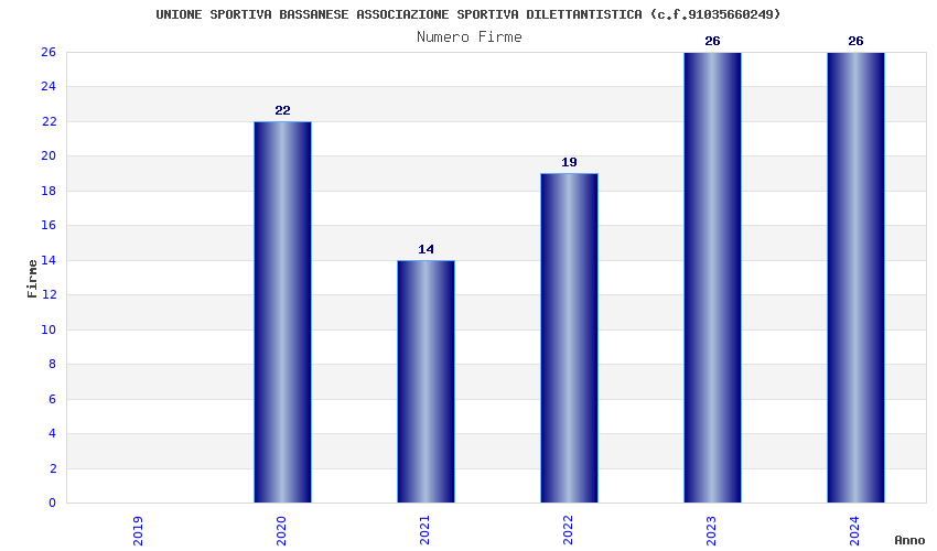 | Anno | Firme | Importi | Media | Naz. | Reg. | Prov. | Comu. |