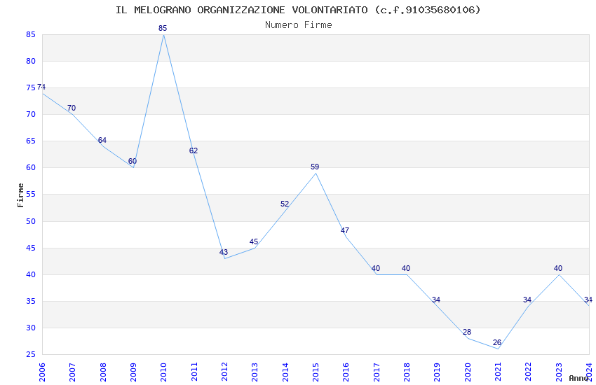 | 2010 | 85 | 2.389,02 | 28,11 | 14.803 | 434 | 285 | 5 |