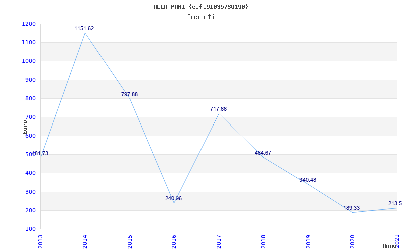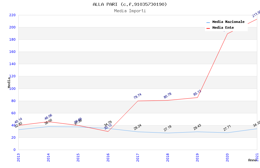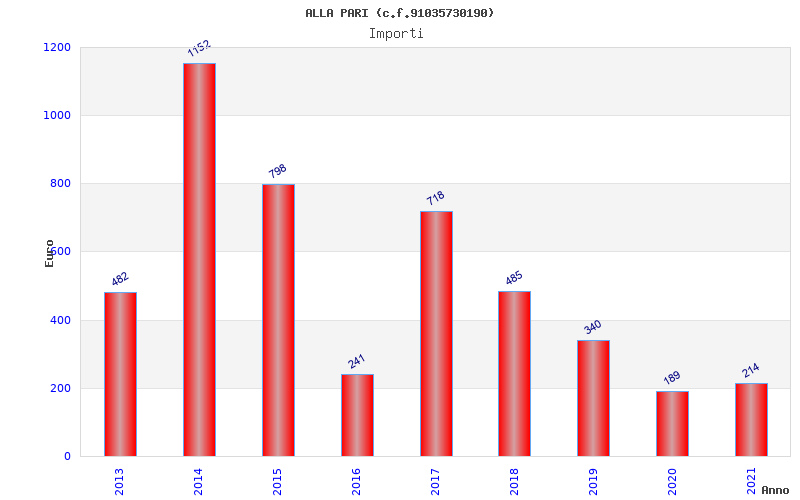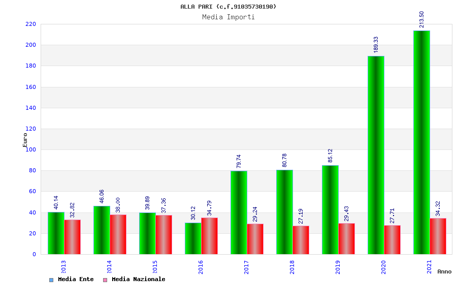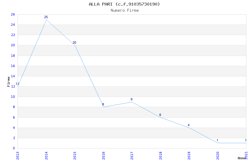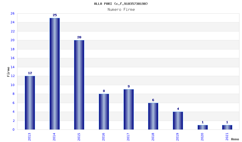| Anno | Firme | Importi | Media | Naz. | Reg. | Prov. | Comu. |