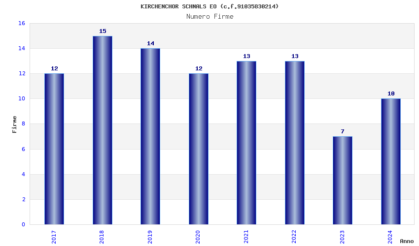 | Anno | Firme | Importi | Media | Naz. | Reg. | Prov. | Comu. |