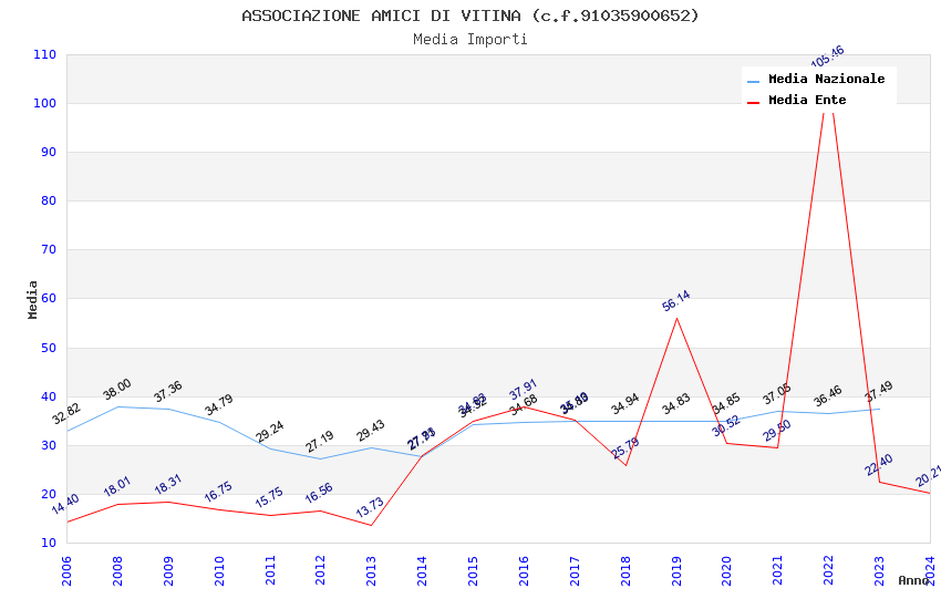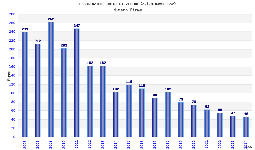 | Anno | Firme | Importi | Media | Naz. | Reg. | Prov. | Comu. |