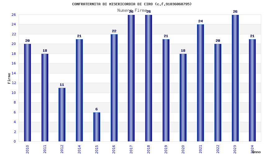 | Anno | Firme | Importi | Media | Naz. | Reg. | Prov. | Comu. |