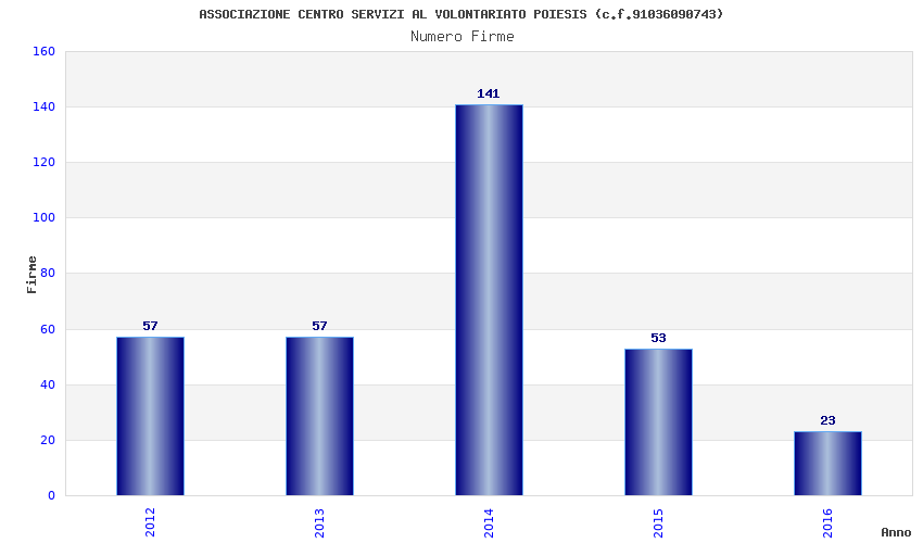 | Anno | Firme | Importi | Media | Naz. | Reg. | Prov. | Comu. |