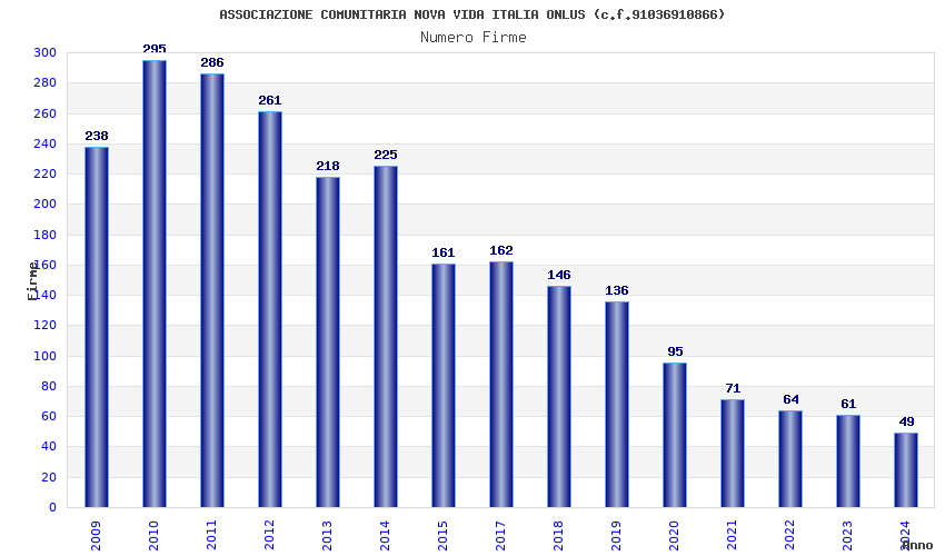 | Anno | Firme | Importi | Media | Naz. | Reg. | Prov. | Comu. |