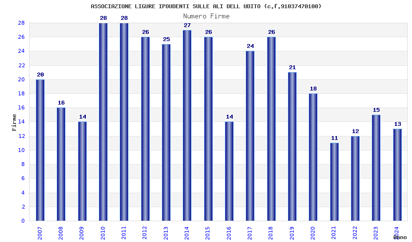 | Anno | Firme | Importi | Media | Naz. | Reg. | Prov. | Comu. |