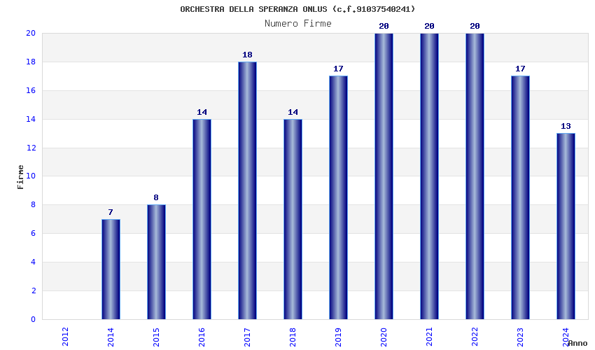 | Anno | Firme | Importi | Media | Naz. | Reg. | Prov. | Comu. |