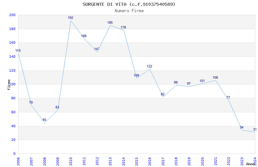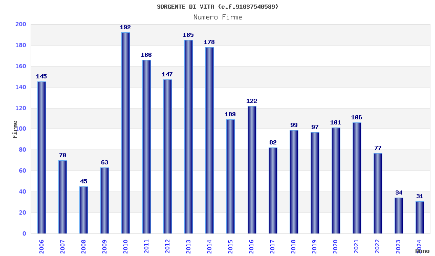Anno Firme Importi Media Naz. Reg. Prov. Comu.