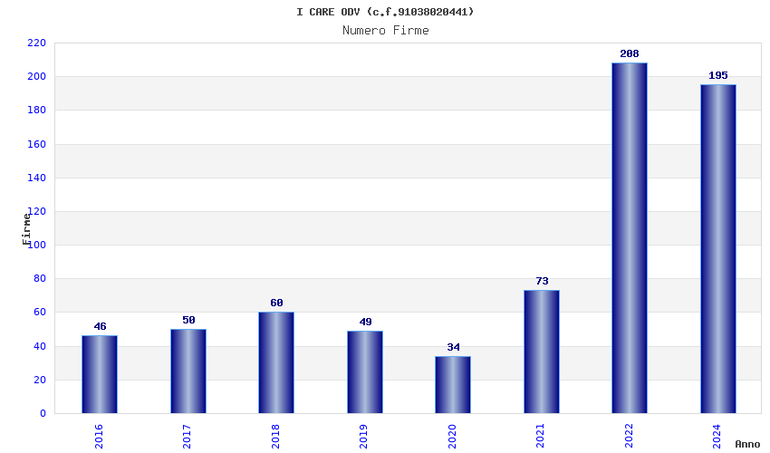 | Anno | Firme | Importi | Media | Naz. | Reg. | Prov. | Comu. |