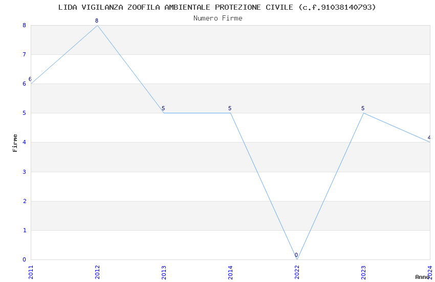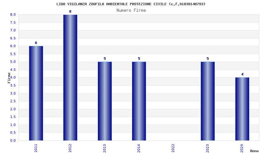| Anno | Firme | Importi | Media | Naz. | Reg. | Prov. | Comu. |