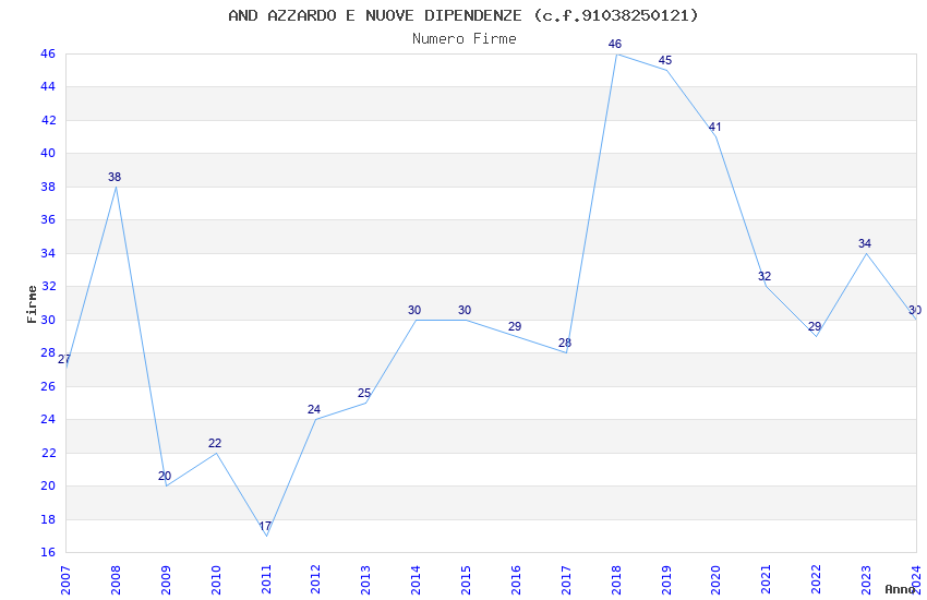 | 2018 | 46 | 1.653,07 | 35,94 | 26.711 | 5.909 | 523 | 40 |