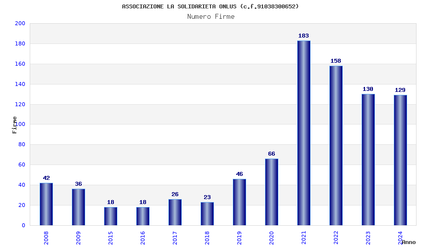 | Anno | Firme | Importi | Media | Naz. | Reg. | Prov. | Comu. |