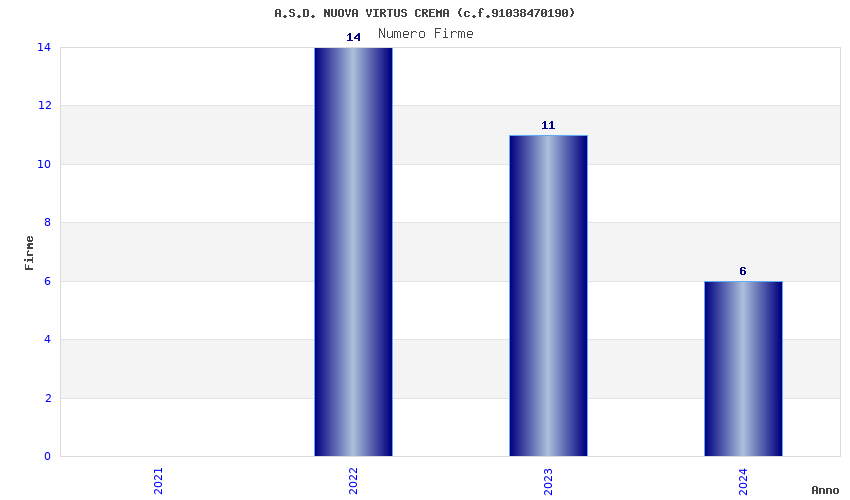 | Anno | Firme | Importi | Media | Naz. | Reg. | Prov. | Comu. |