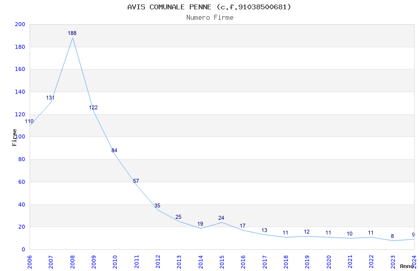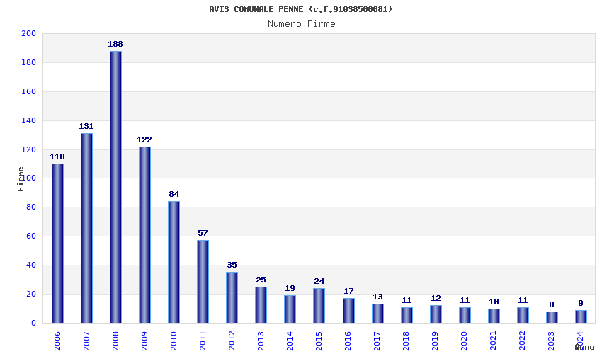 | Anno | Firme | Importi | Media | Naz. | Reg. | Prov. | Comu. |