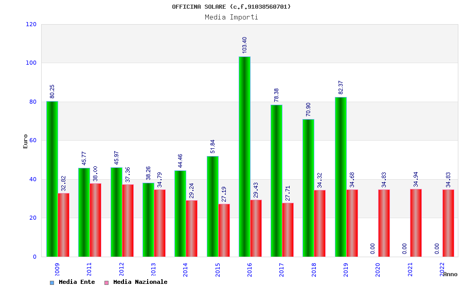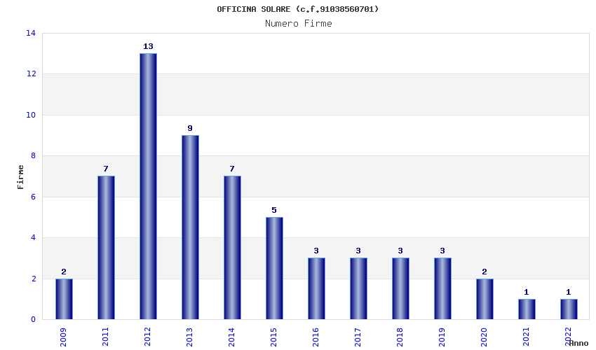 | Anno | Firme | Importi | Media | Naz. | Reg. | Prov. | Comu. |