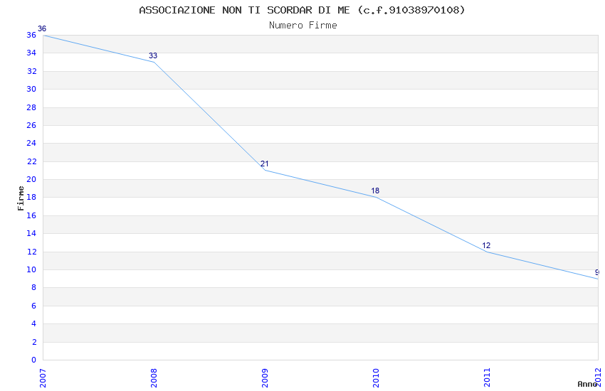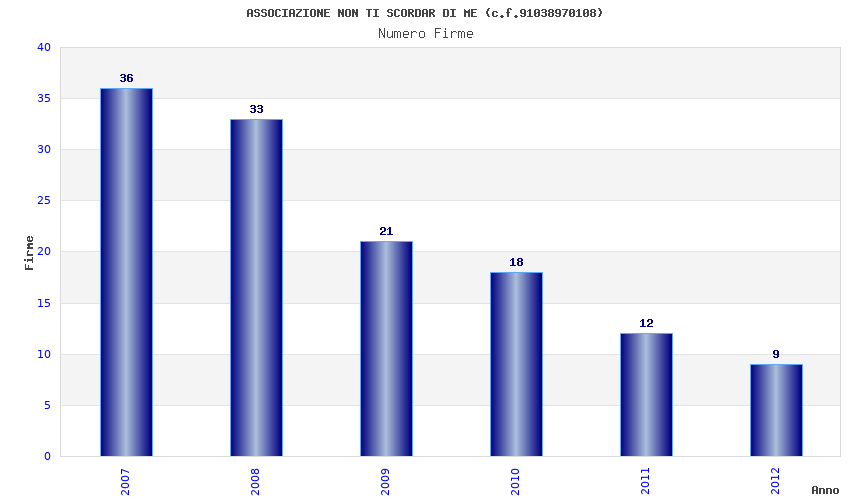 | Anno | Firme | Importi | Media | Naz. | Reg. | Prov. | Comu. |