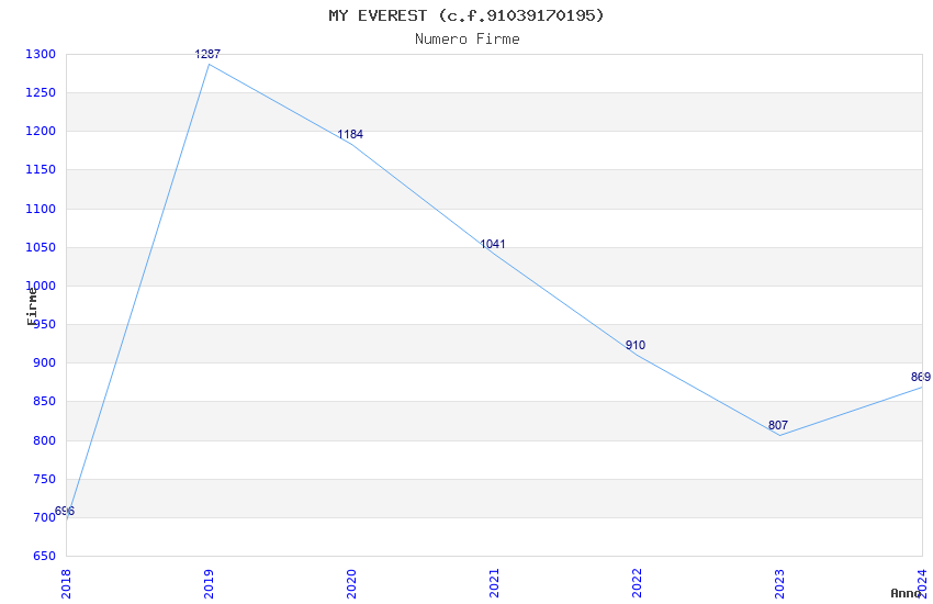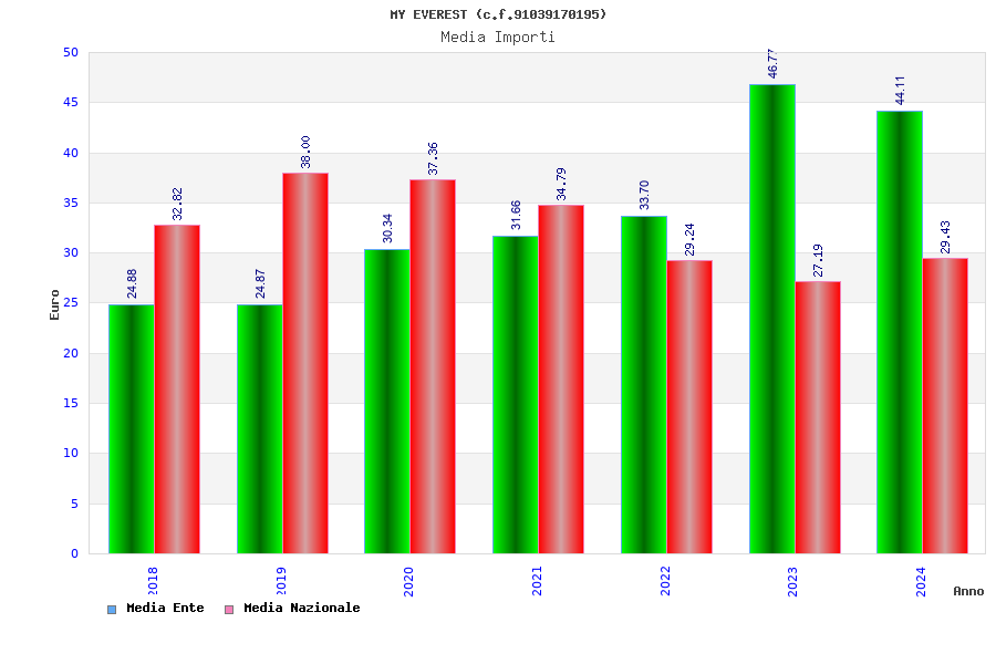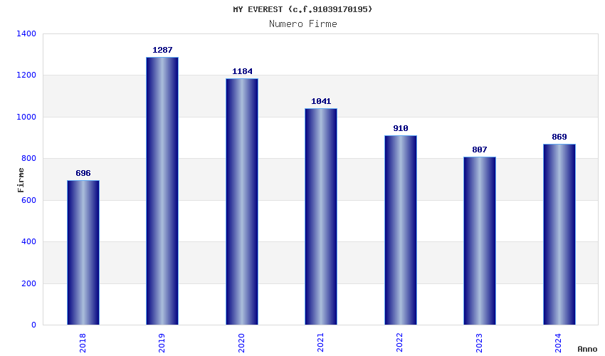 | Anno | Firme | Importi | Media | Naz. | Reg. | Prov. | Comu. |