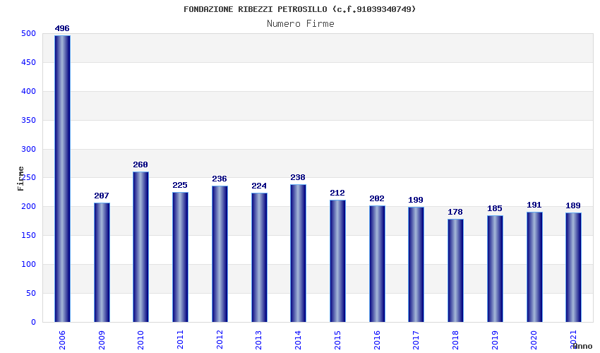 | Anno | Firme | Importi | Media | Naz. | Reg. | Prov. | Comu. |