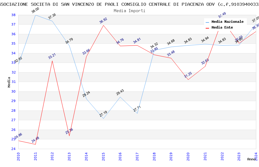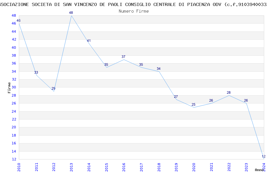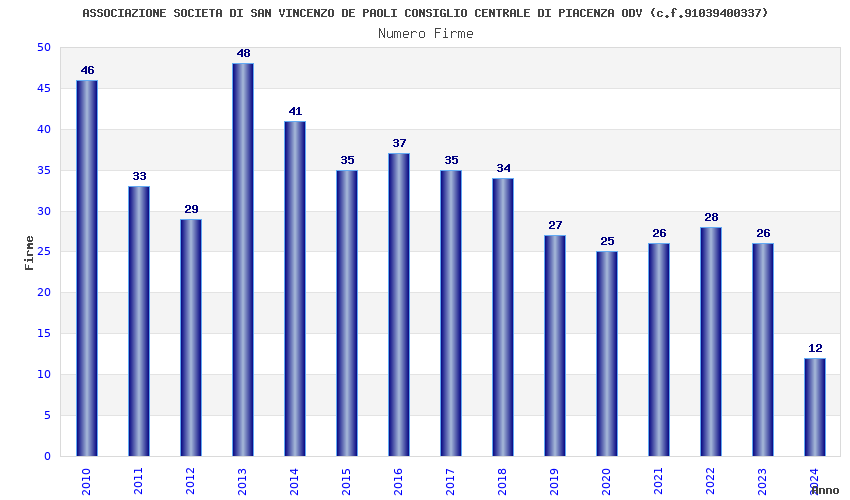 | Anno | Firme | Importi | Media | Naz. | Reg. | Prov. | Comu. |