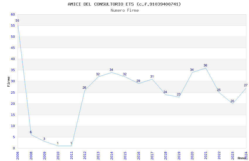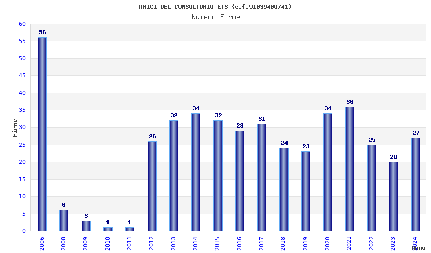 | Anno | Firme | Importi | Media | Naz. | Reg. | Prov. | Comu. |