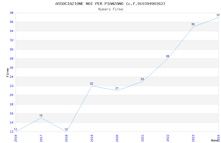 | 2024 | 37 | 1.357,96 | 36,70 | 31.421 | 2.925 | 538 | 5 |