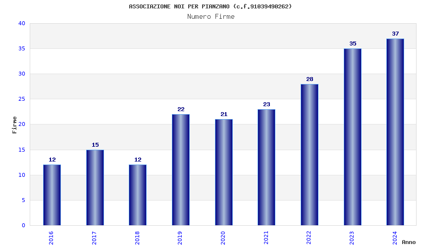 | Anno | Firme | Importi | Media | Naz. | Reg. | Prov. | Comu. |