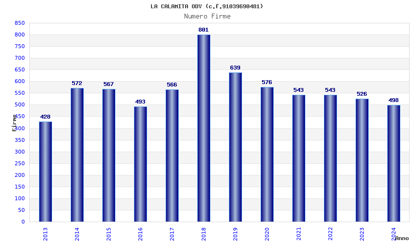 | Anno | Firme | Importi | Media | Naz. | Reg. | Prov. | Comu. |