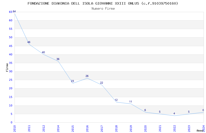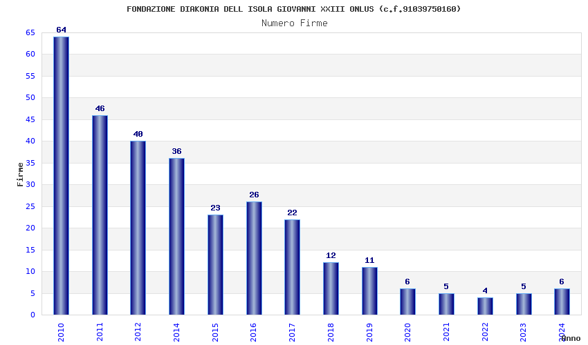 | Anno | Firme | Importi | Media | Naz. | Reg. | Prov. | Comu. |