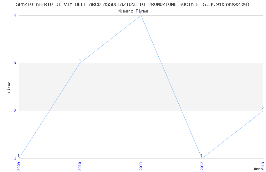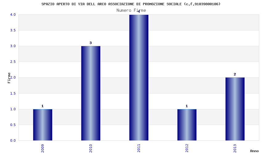 | Anno | Firme | Importi | Media | Naz. | Reg. | Prov. | Comu. |