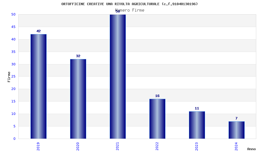 | Anno | Firme | Importi | Media | Naz. | Reg. | Prov. | Comu. |