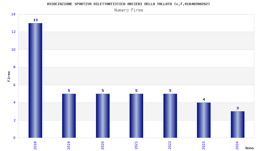 | Anno | Firme | Importi | Media | Naz. | Reg. | Prov. | Comu. |