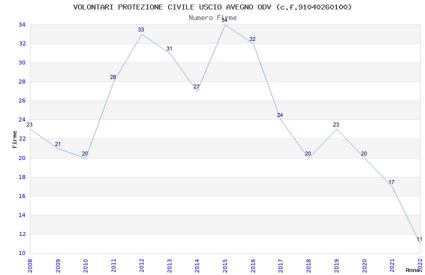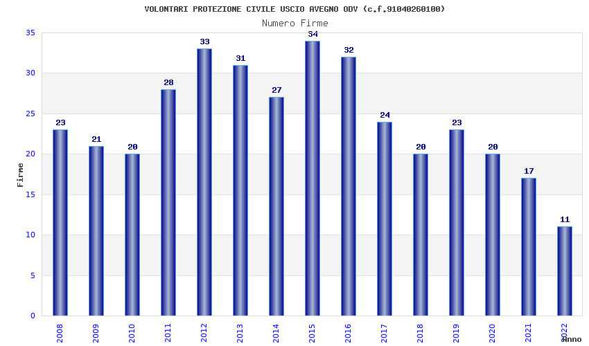 | Anno | Firme | Importi | Media | Naz. | Reg. | Prov. | Comu. |