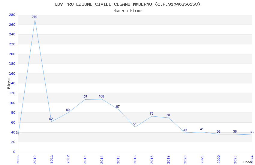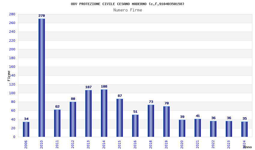 | Anno | Firme | Importi | Media | Naz. | Reg. | Prov. | Comu. |