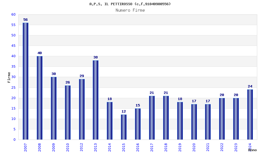 | 2007 | 56 | 1.708,29 | 30,51 | 13.928 | 197 | 38 | 24 |
