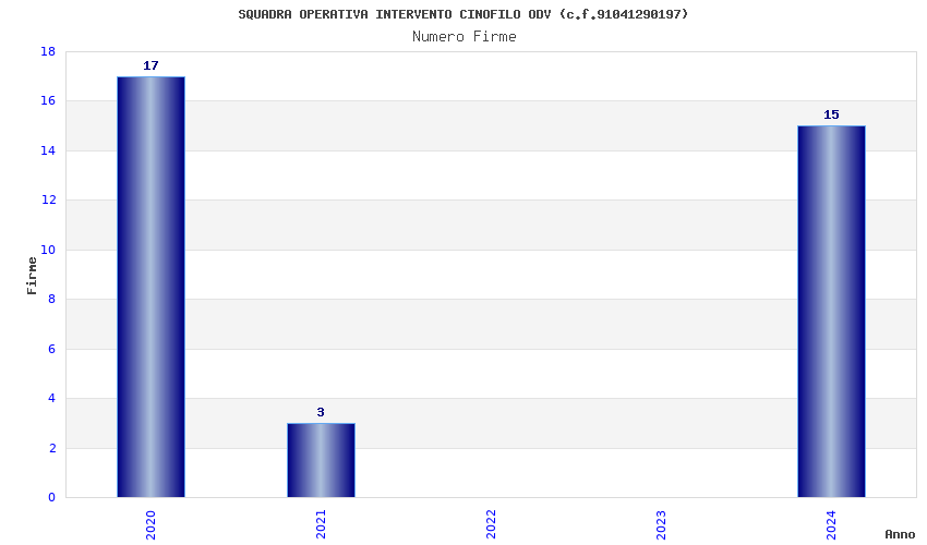 | Anno | Firme | Importi | Media | Naz. | Reg. | Prov. | Comu. |