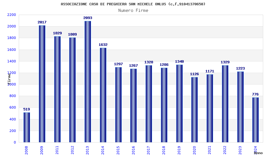 | Anno | Firme | Importi | Media | Naz. | Reg. | Prov. | Comu. |