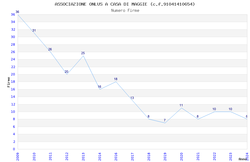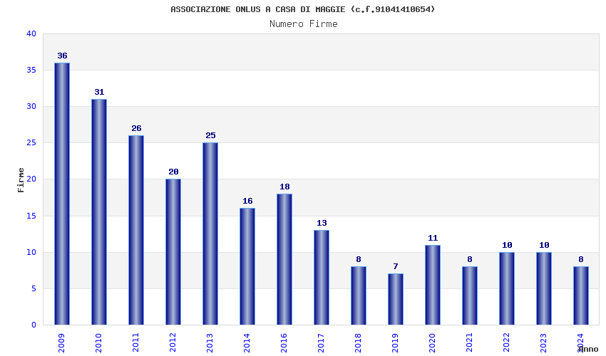 | Anno | Firme | Importi | Media | Naz. | Reg. | Prov. | Comu. |