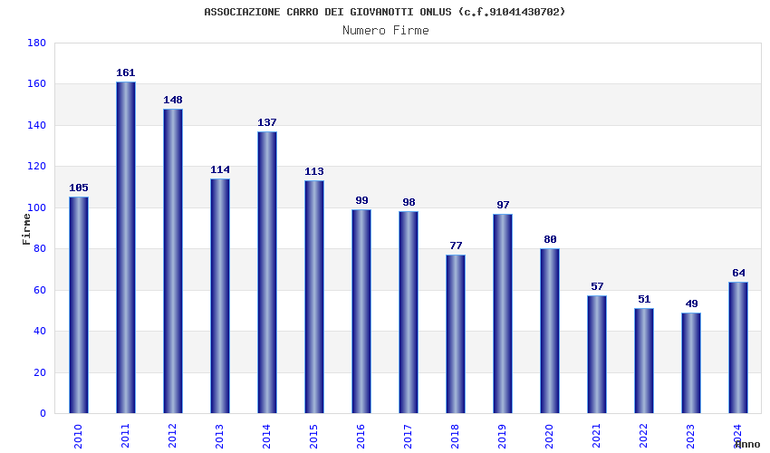 | Anno | Firme | Importi | Media | Naz. | Reg. | Prov. | Comu. |