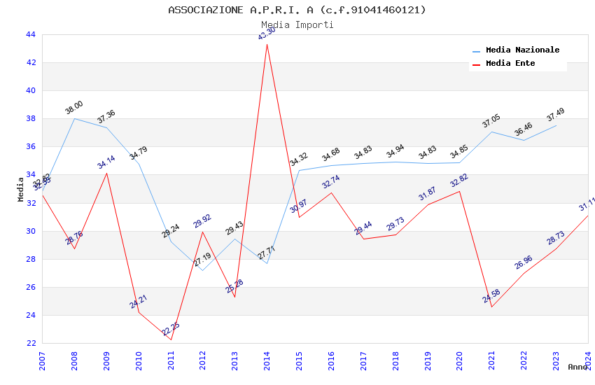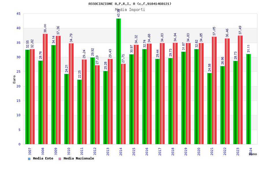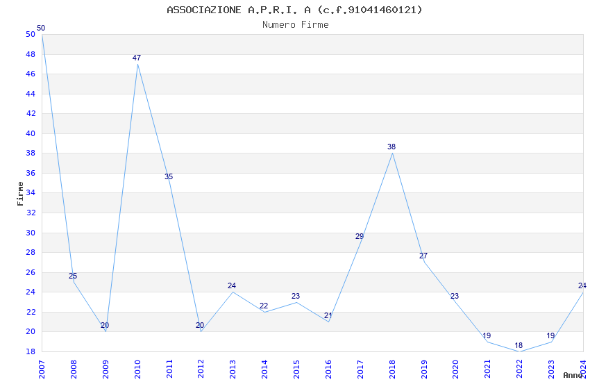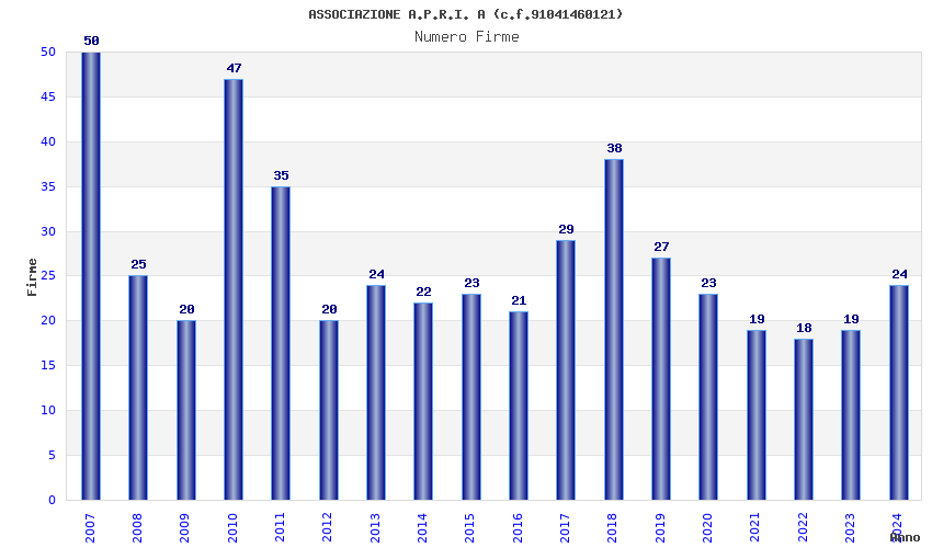 | Anno | Firme | Importi | Media | Naz. | Reg. | Prov. | Comu. |