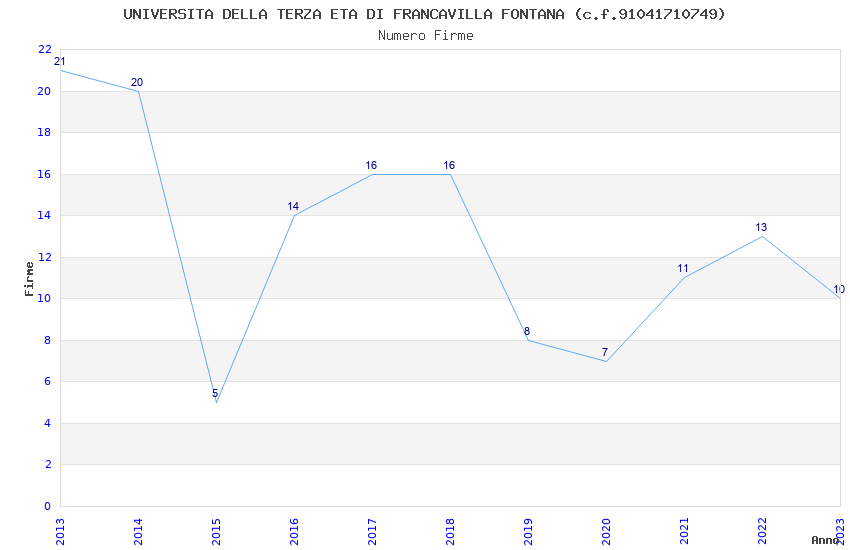 | 2013 | 21 | 355,97 | 16,95 | 37.816 | 1.617 | 145 | 14 |
