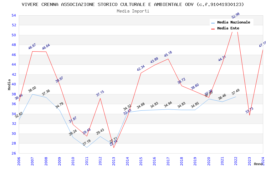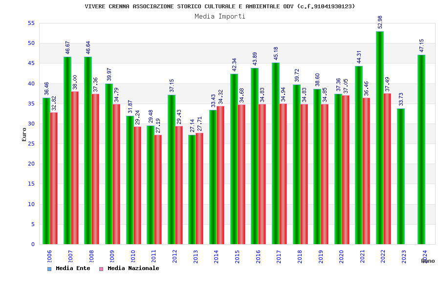 | Anno | Firme | Importi | Media | Naz. | Reg. | Prov. | Comu. |