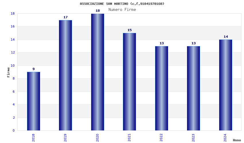 | Anno | Firme | Importi | Media | Naz. | Reg. | Prov. | Comu. |