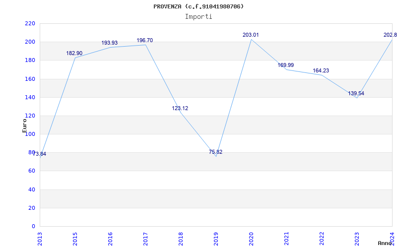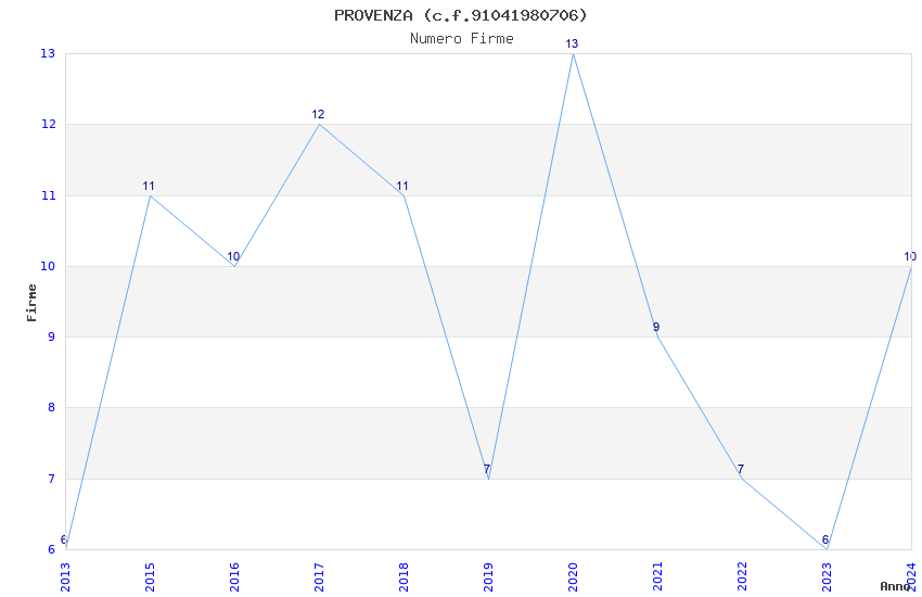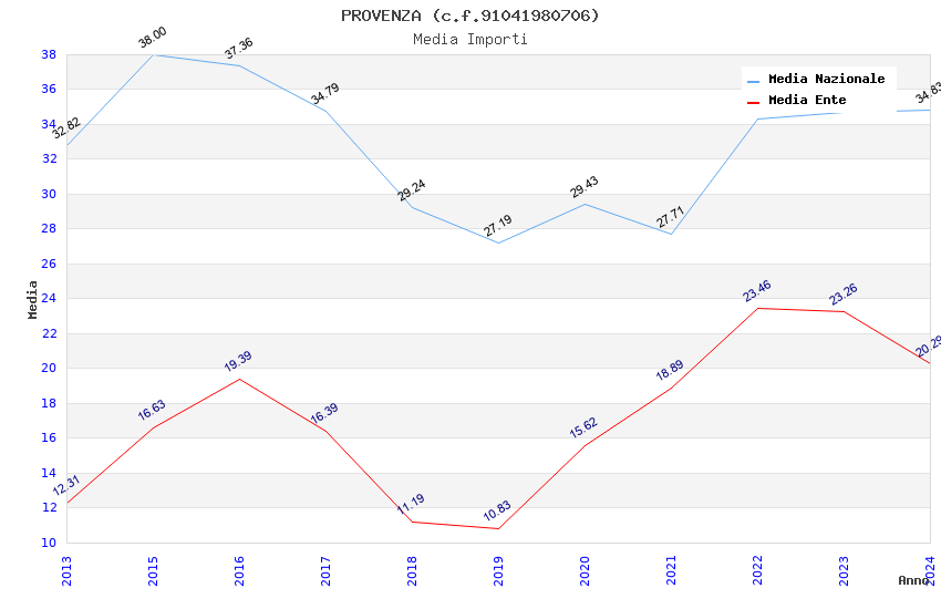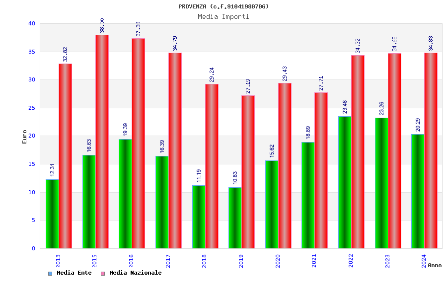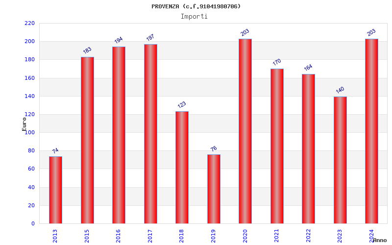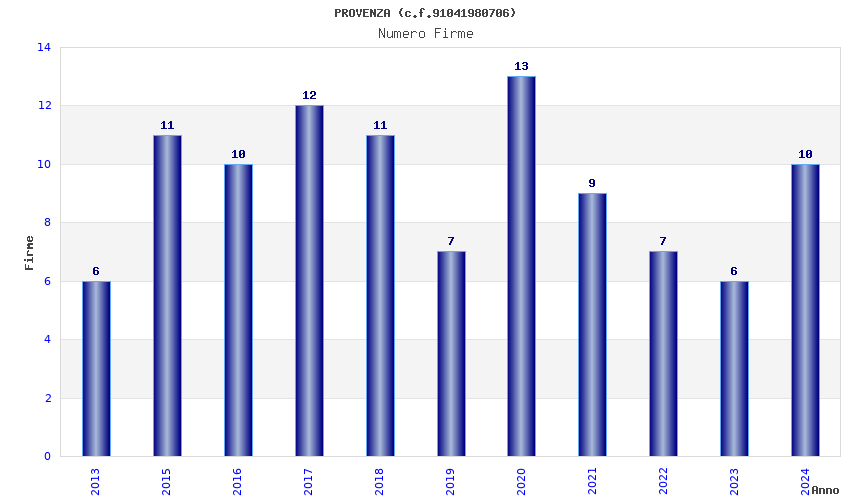 | Anno | Firme | Importi | Media | Naz. | Reg. | Prov. | Comu. |